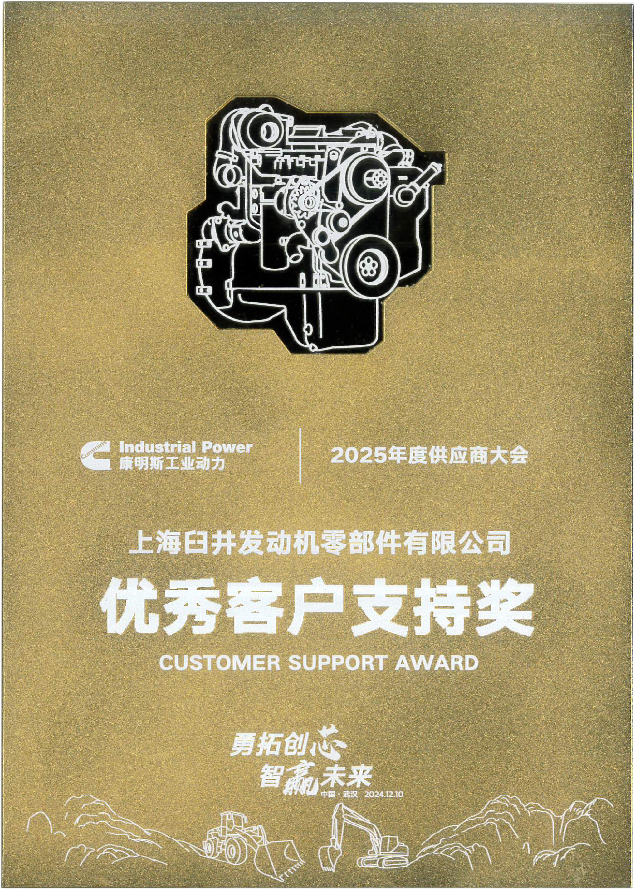 康明斯工業(yè)動力授予 上海臼井公司"優(yōu)秀客戶支持"獎。